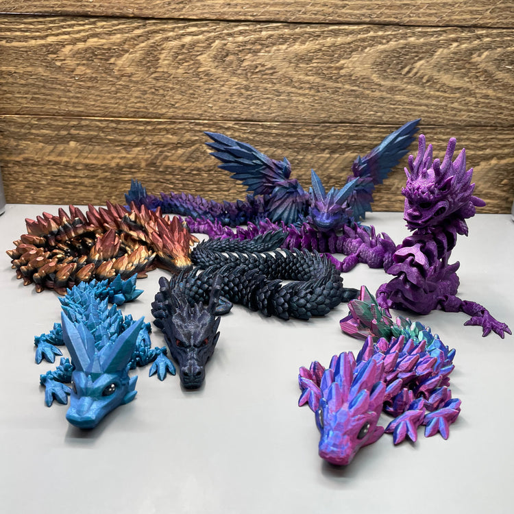 Articulated Winged Crystal Dragon! - 3D Printed. Premium Colors! Cute DnD Desk Pet!